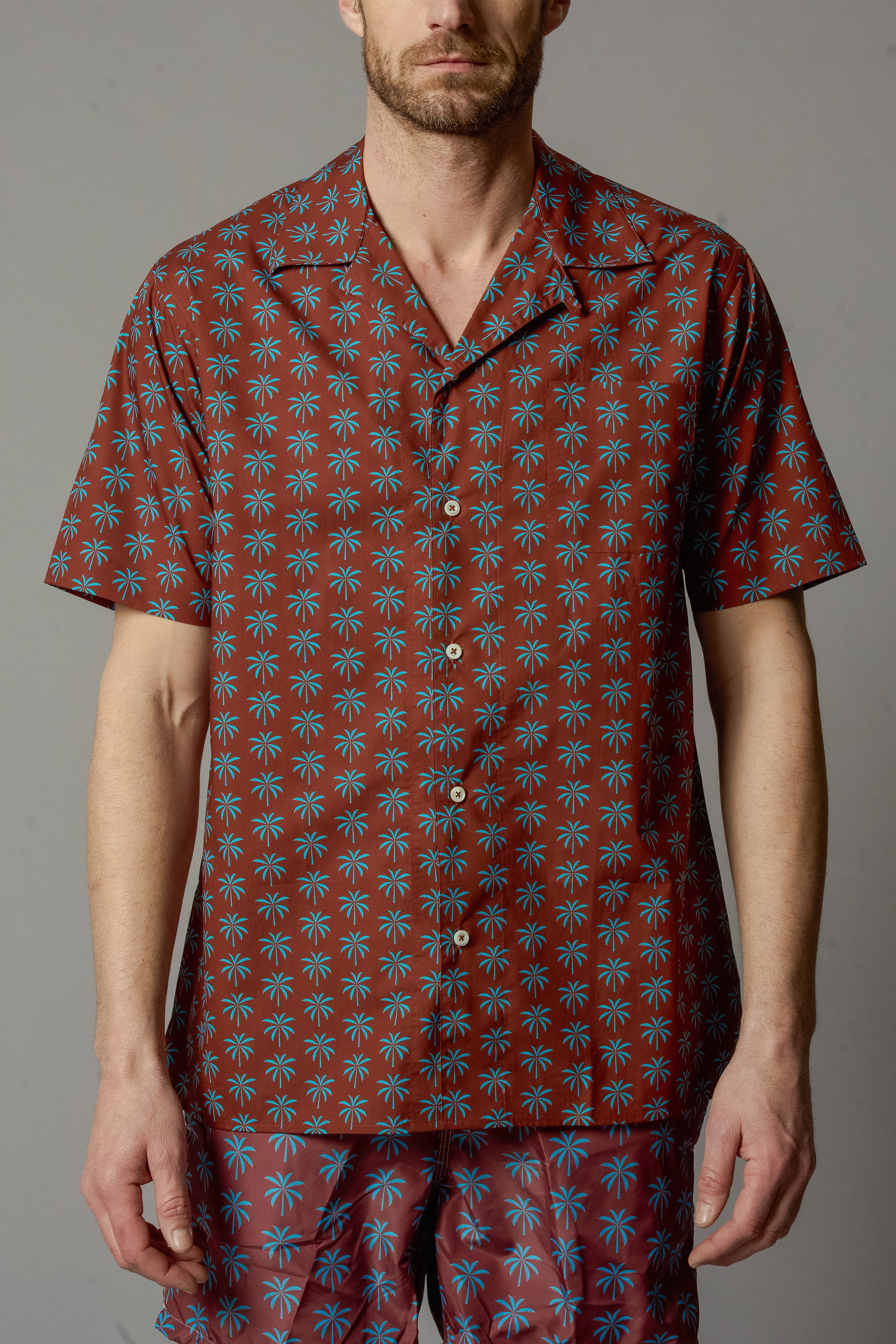 Wear our short sleeve cotton shirt with printed palm logo Arnaud in light cotton either for a day by the sea and sun or for a more elegant tropical evening.
