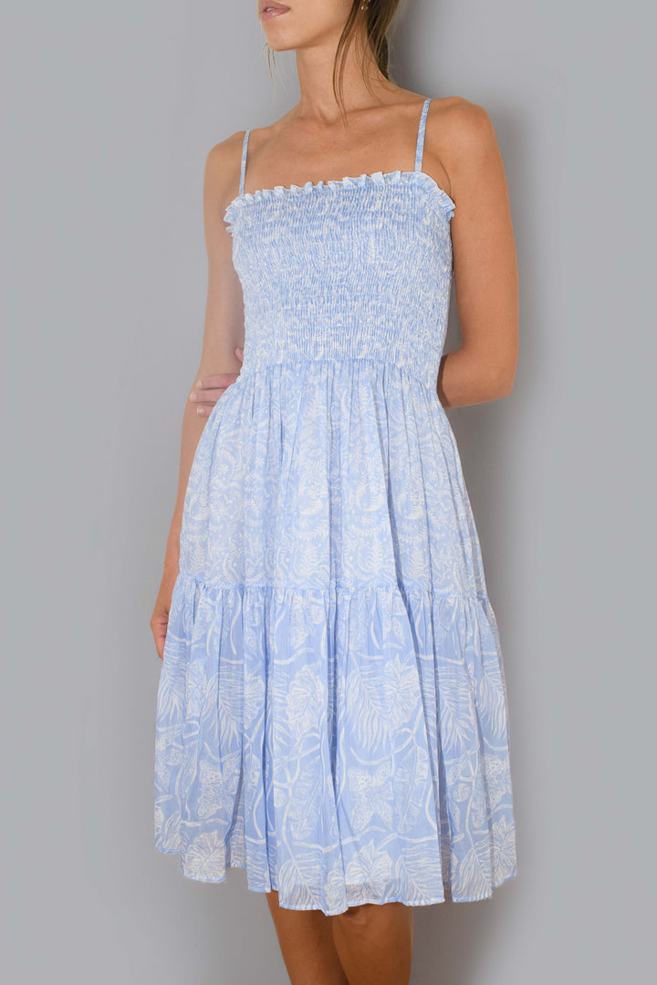 Brooke Short Strap Dress Silky Cotton Light Blue VM Print