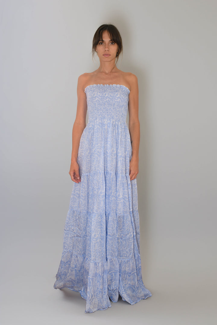 Irene Long Strap Dress Silky Cotton Light Blue VM Print