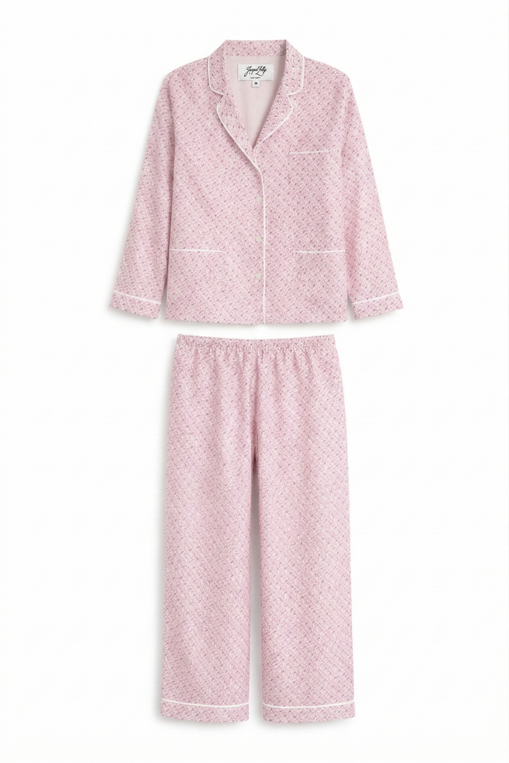 The Jackie Pyjama is crafted from luxurious silk and features our signature JZ print in soft pink and brown tones. A timeless silhouette designed for effortless days spent barefoot, embracing the slow rhythm of island life.