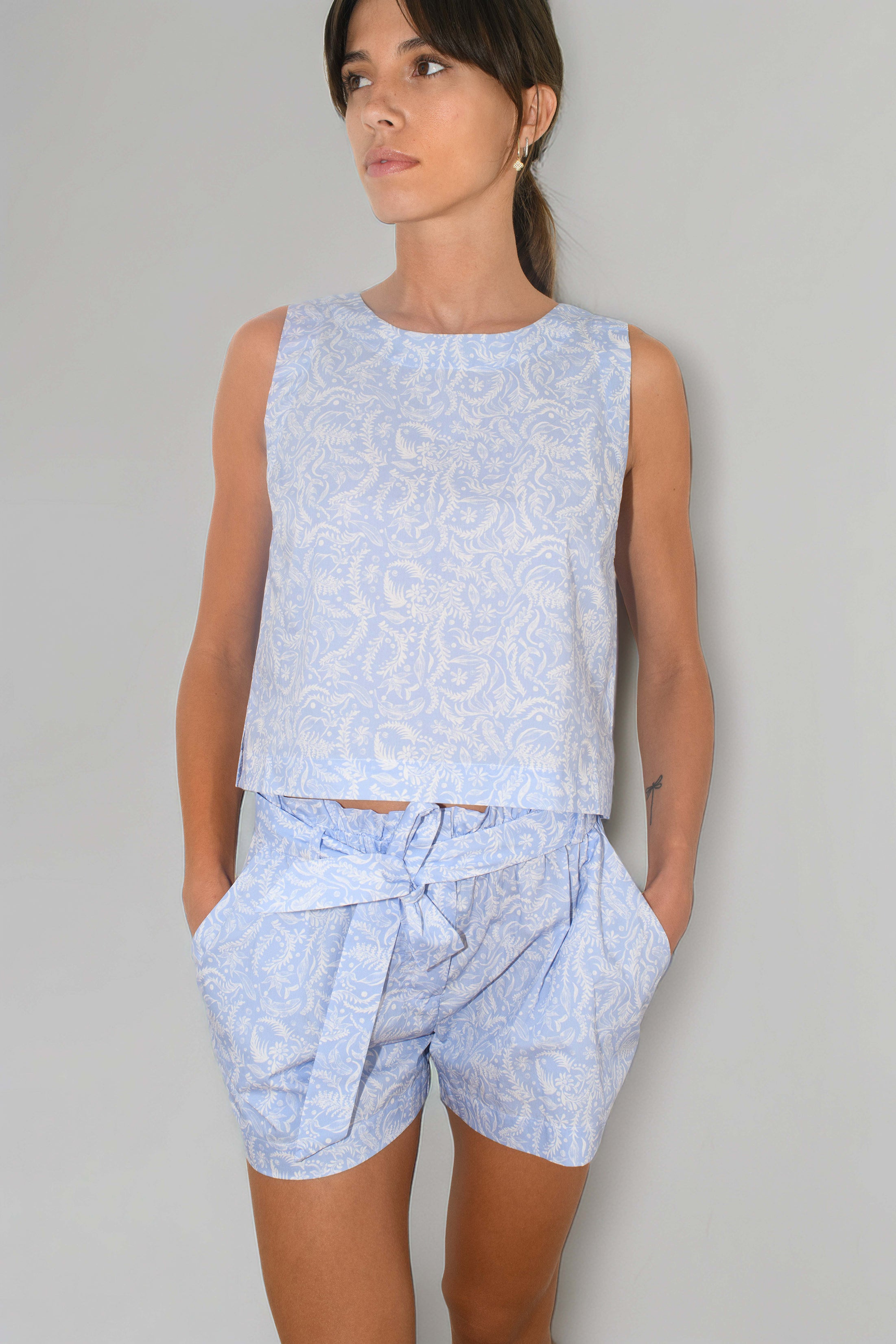 Noemi Belted Shorts Cotton Light Blue VM Print