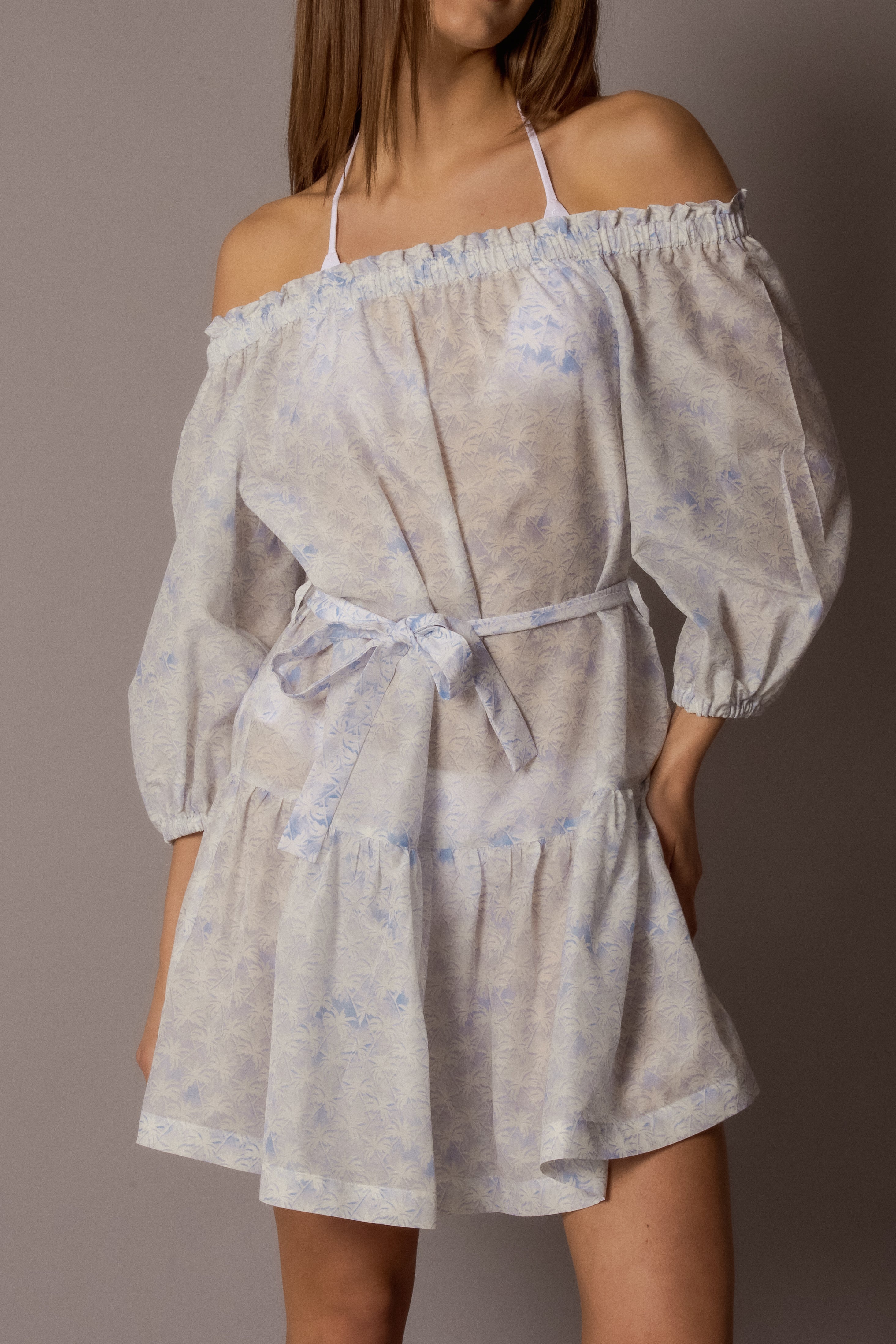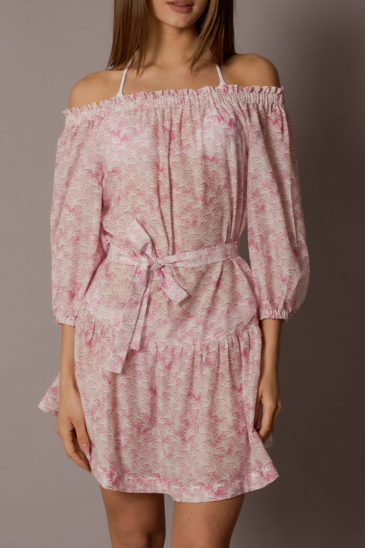Our signature Giselle dress in our Palms print, available in blue and pink. An island twist on a classic breezy beach piece.