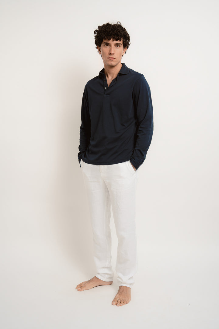 Made from soft, breathable cotton, the Patrick long sleeve polo blends casual style with all-day comfort. Ideal for barefoot moments by the water or simply unwinding in style.