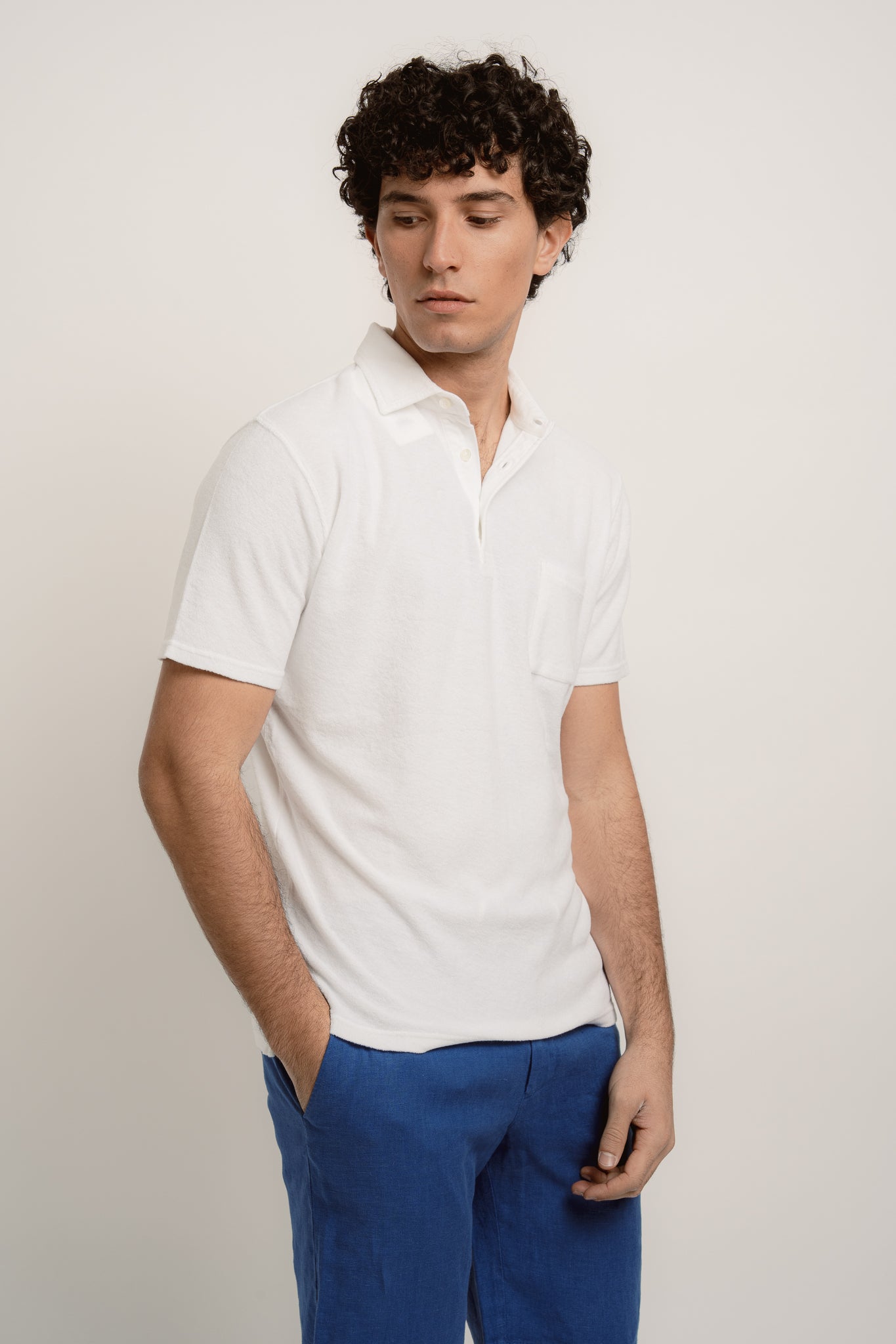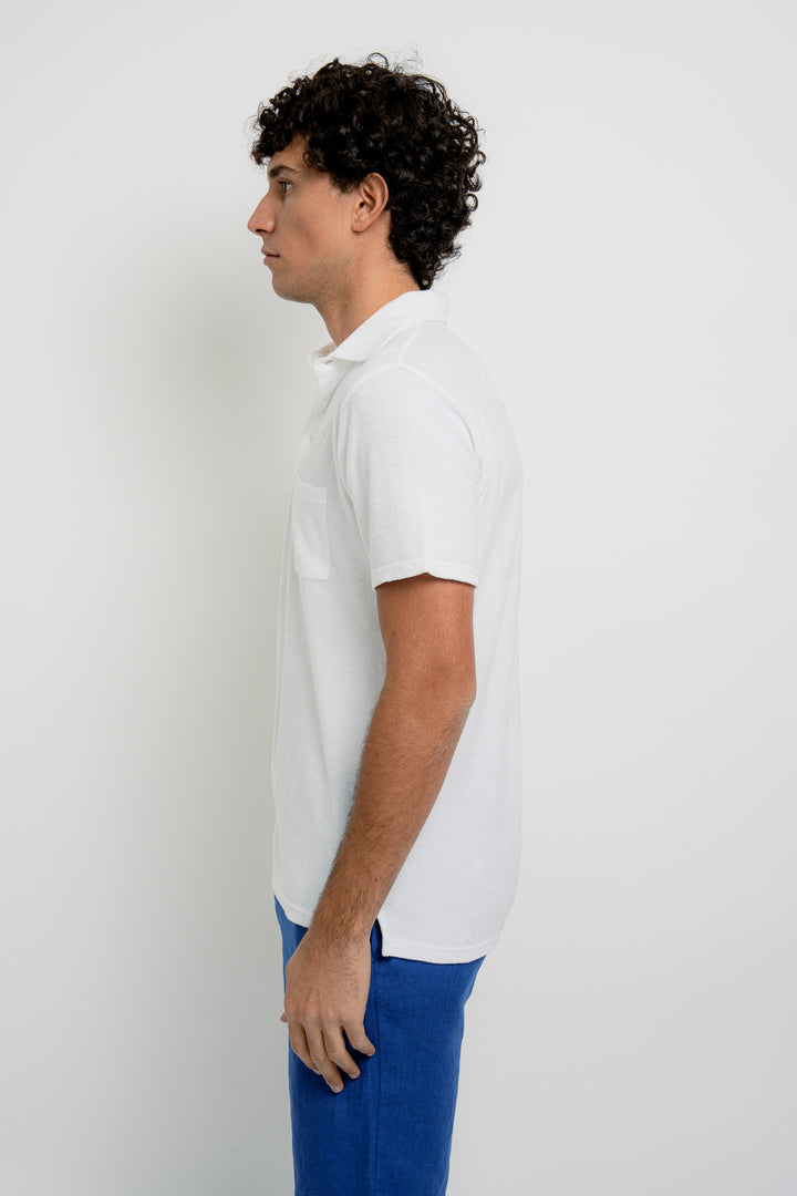 Cut from soft terry cotton, the Pierre brings a sporty feel to our classic cut polo. Versatile and easy, this piece is ideal for tennis, paddle, or unwinding in the shade.